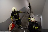 Nach Eintreffen der ersten Kräfte wurde gemäß Übungsannahme Alarmstufe 2 ausgelöst, um die Zusammenarbeit mehrerer Feuerwehren sowie der Rettungsorganisationen zu trainieren. Insgesamt nahmen rund 180 Einsatzkräfte von Feuerwehr und Rotem Kreuz der Übung teil.