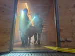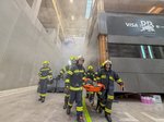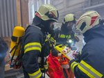 Die dreistöckige Energy Station wurden komplett vernebelt. Die unterschiedlichen Atemschutztrupps hatten die Herausforderung im verwinkelten Erdgeschoss vermisste Personen zu suchen und zu retten.