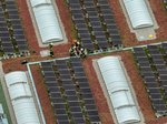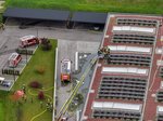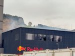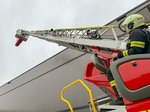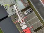 Eine weitere Herausforderung, war die Personenrettung und die Löscharbeiten am Dach der Halle. Der Brand im Inneren hatte sich auf den Dachbereich ausgebreitet. Ein Teil des Daches ist mit einer PV-Anlage ausgestattet. Eine unbekannte Zahl an Elektrikern, die Wartungsarbeiten an der PV Anlage durchführten, wurden durch die Flammen eingeschlossen.