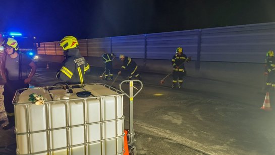 Beim Eintreffen des Oberwanger Einsatzleiters Robert Grabner kam der Diesel bereits auf der ganzen Fahrbahn entgegen. Einsatzleiter Grabner schilderte die ersten Maßnahmen: „Wir errichteten mit Ölbindemittel mehrere kleine Staudämme, um den Diesel auf der befestigten Fahrbahn zu halten und ein Eindringen in die Kanalisation zu verhindern.“