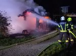 Beim Eintreffen des Tanklöschfahrzeugs der FF Ottnang stand die Hütte bereits in Vollbrand. Sofort wurde gemeinsam mit der Feuerwehr Bruckmühl ein Löschangriff mit zwei C-Rohren gestartet.