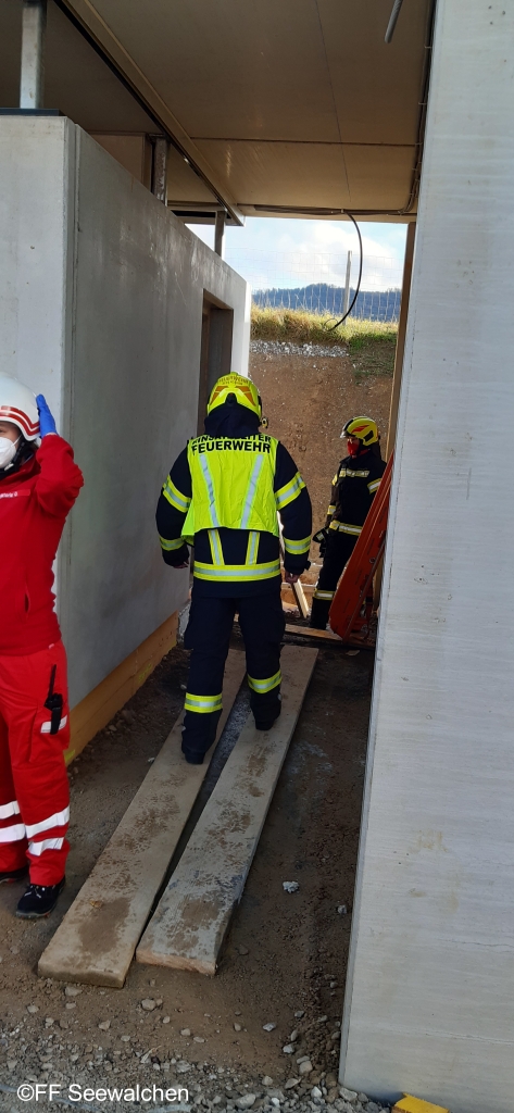 Ein Arbeiter war in einem Schacht gefallen, der Rettungsdienst war bereits vor Ort und betreute die Verletzte Person. Bei Eintreffen der Feuerwehr Seewalchen wurde die Rettung mittels Spineboard und Korbtrage zügig vorbereitet, somit konnte die Rettung rasch und schonend durchgeführt werden. Der Verletzte wurde dem Rettungsdienst übergeben. Der Einsatz der Höhenrettungsgruppe war nicht mehr notwendig. Nach rund 1 Stunde konnte die Einsatzbereitschaft wiederhergestellt werden.