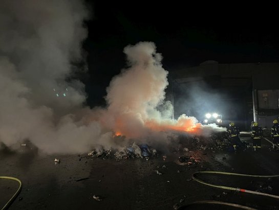 Ein Mitarbeiter des Betriebes sah am Morgen Rauch aus einem Gewerbemüllhaufen aufsteigen. Beim auseinanderräumen mit einem Bagger zündete der Müll dann durch.