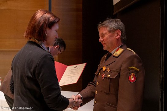 Mit der Bezirksmedaille 3. Stufe wurden die Salzburger Brandräte Karl Paul, Johann Landrichtinger und Ing. Julian Slavicek ausgezeichnet. Mit der Bezirksmedaille 2. Stufe wurden Andreas Distler, Thomas Höllnsteiner und Dr. med.univ. Bernd Hainbucher ausgezeichnet. Die Bezirksmedaille 1. Stufe erhielt Stefan Enser. Dietmar Fageth und Hans-Peter-Kastinger wurden mit dem ÖBFV-Verdienstzeichen 3. Stufe ausgezeichnet. Ing. Mag. Helmut Kühberger wurde mit dem OÖ-Feuerwehr-Verdienstkreuz 3. Stufe, Harald Schoblocher mit der Florianmedaille des ÖÖ-Landesfeuerwehrverbandes 2. Stufe, Alois Schirl mit dem ÖBFV-Verdienstzeichen 2. Stufe und Gerhard Gehmayr mit dem OÖ-Feuerwehr-Verdienstkreuz 2. Stufe ausgezeichnet. Ebenfalls wurden seitens des Landesverbandes Hannes Niedermayr mit der Florianmedaille der 1. Stufe, Alois Doninger mit den ÖBFV-Verdienstzeichen 2. Stufe und Wolfgang Hufnagl mit dem ÖBFV-Verdienstzeichen der 1. Stufe ausgezeichnet.