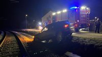 Am Einsatzort angekommen, stellten wir einen Pkw fest, der von der Straße abgekommen und im Graben des Bahndammes gelandet war. Da der Pkw in das Lichtraumprofil des Gleises ragte, wurde umgehend die Sperrung der Eisenbahnstrecke von den Kolleginnen und Kollegen der Polizei veranlasst.